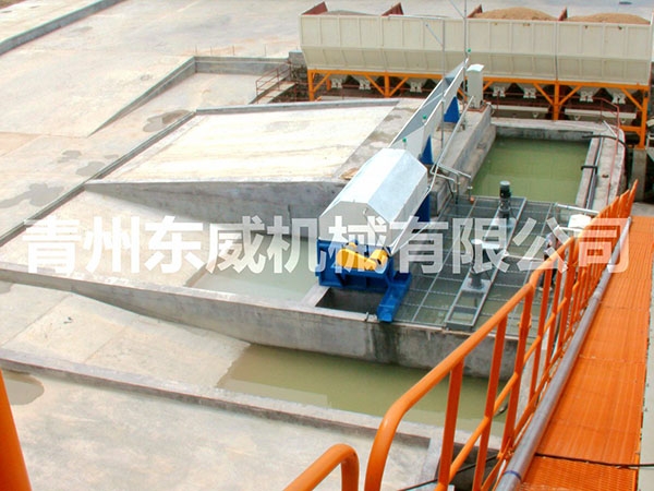 5.分離物(wù)料清潔度(dù)高,分離機下部1/3高(gāo)度始終滿水,也就是說石子和砂子都是經過水洗的,表麵(miàn)清潔度高(gāo)。出砂模式為濾網(wǎng)水(shuǐ)撈式(shì),一般產品螺旋輸送機擠壓出砂(shā),含有大量灰漿。