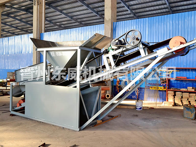 篩(shāi)沙(shā)機整個設備由原料儲料鬥、原料供料皮帶機(jī)、平(píng)置篩網(wǎng)、成品(pǐn)砂堆料皮(pí)帶、棄石出料槽等組成,設備(bèi)通(tōng)電運轉後由裝載機將原料裝入大容量儲料鬥,原料經由供料皮(pí)帶投入到(dào)平置篩筒,旋轉的篩筒帶動原料在(zài)筒內葉片的推擠、翻滾下形(xíng)成原料在篩網麵滑滾(gǔn)的人工篩砂效果,篩出的成品砂通過集料鬥落在成品砂皮帶上,同時被皮帶(dài)提升落下呈成品(pǐn)料堆、或直接落入儲料鬥,整個過程連續且物料分級清楚(chǔ)、準確。